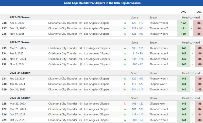 雷霆本赛季3-0横扫快船,已经连续两个赛季横扫快船,跨赛季拿到8连胜。